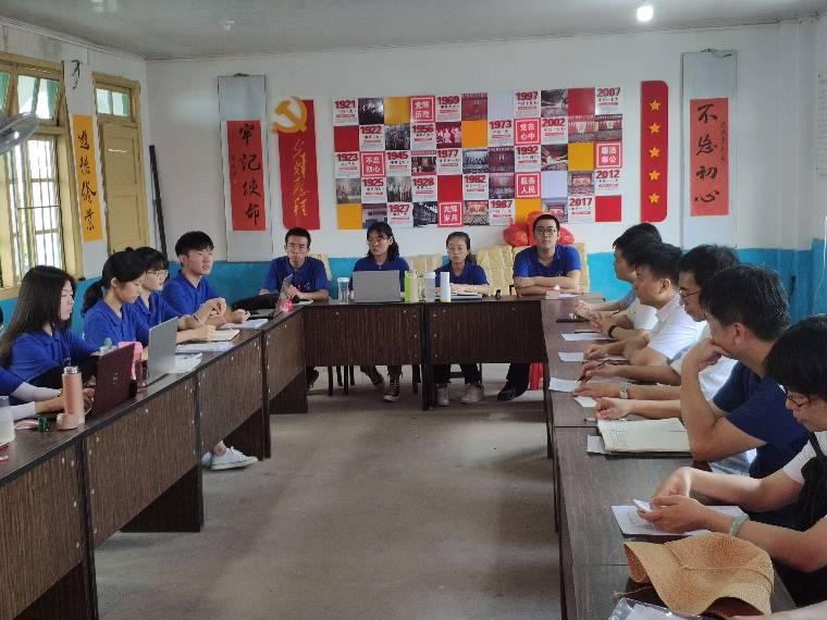 领导老师们与部分支教队员座谈交流。暖风支教队队长韦宁代表全体队员对领导的慰问表示欢迎和感谢,随即汇报前期的工作相关情况和进展及简单叙述接下来十天的工作部署。他表示暖风支教服务队紧紧围绕教学、日常管理、寻访调研等方面开展工作,努力提升自身教学水平,提高教学质量;深入贯彻精准扶贫政策,对学生们进行家访调研等。支教队员接着分享了自己在支教过程中的感悟与收获。同时各年级辅导员老师发表了个人感受和对队员们的期许。