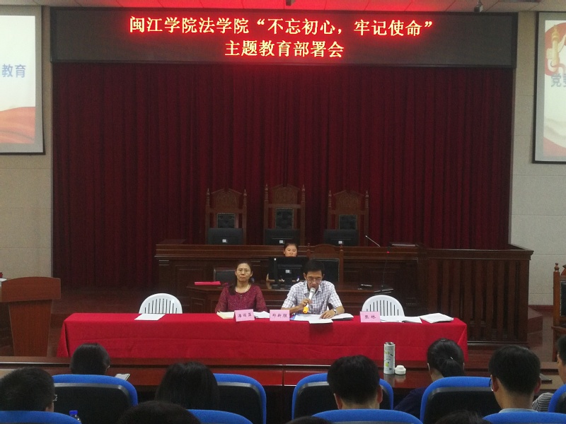 9月18日,可乐小说网 “不忘初心、牢记使命”主题教育动员部署会在模拟法庭召开。可乐小说网 党委郑新胜书记、潘丽萍院长、张林副书记出席会议,全体教职工党员以及学生党员参加了部署会。会议由张林副书记主持。