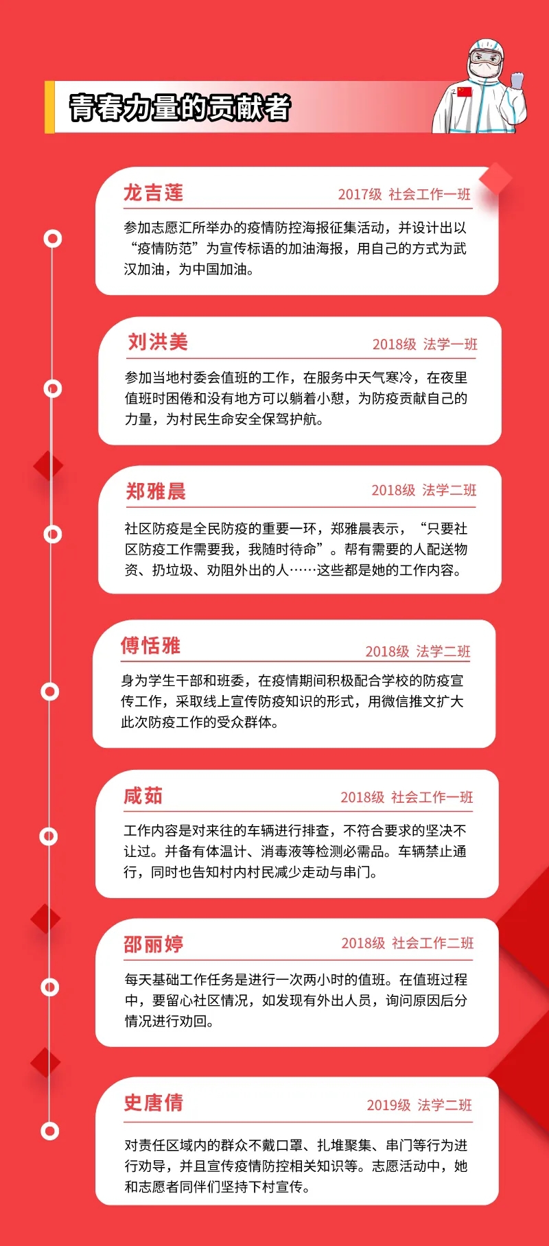 党旗所指,团旗所向。疫情期间,可乐小说网 团委发挥引领作用,号召学生要配合防疫工作,在做好自身安全防护的前提下,依法科学有序参与疫情联防联控。可乐小说网 涌现了以下青年团员主动投身抗“疫”一线。