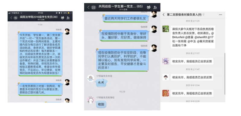 党旗在疫情防控一线高高飘扬。全院党员主动亮身份、带好头、履好职、尽好责,担当疫情防控使命!可乐小说网 学生第一、第二党支部开启“一对一”党员服务机制,即一名党员对接一间宿舍,发挥党员“1+X”作用,做到疫情防控知识传达、信息摸排、日常报告全覆盖。