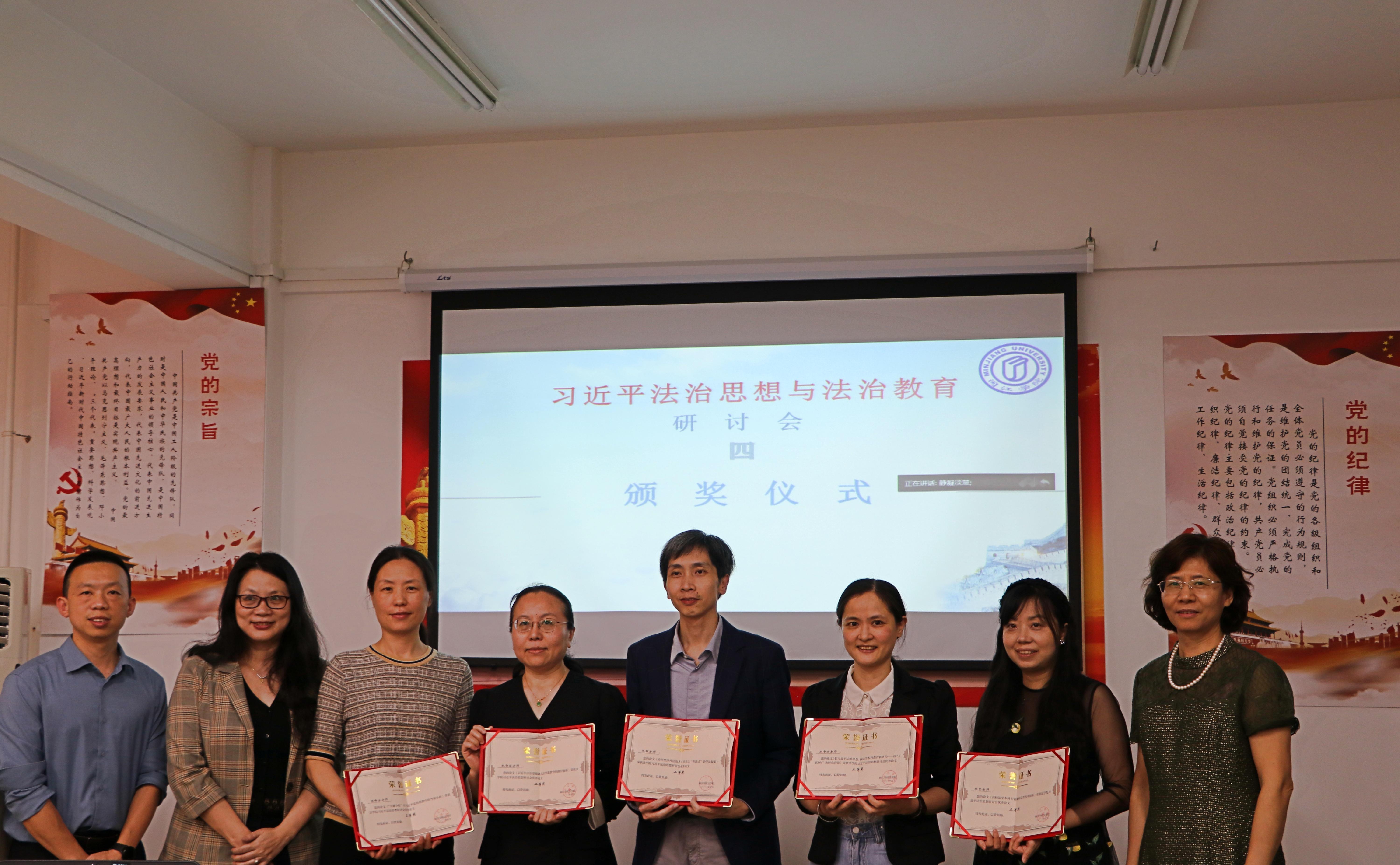 本届研讨会的论文,经校外专家盲审评选出六位获奖者,林安民教授获一等奖,纪智媛副教授、陈雄老师获二等奖,郑净方副教授、陈峰冰副教授、张坚副教授三等奖。阮晓莺副院长和潘丽萍督导员为获奖者颁奖。