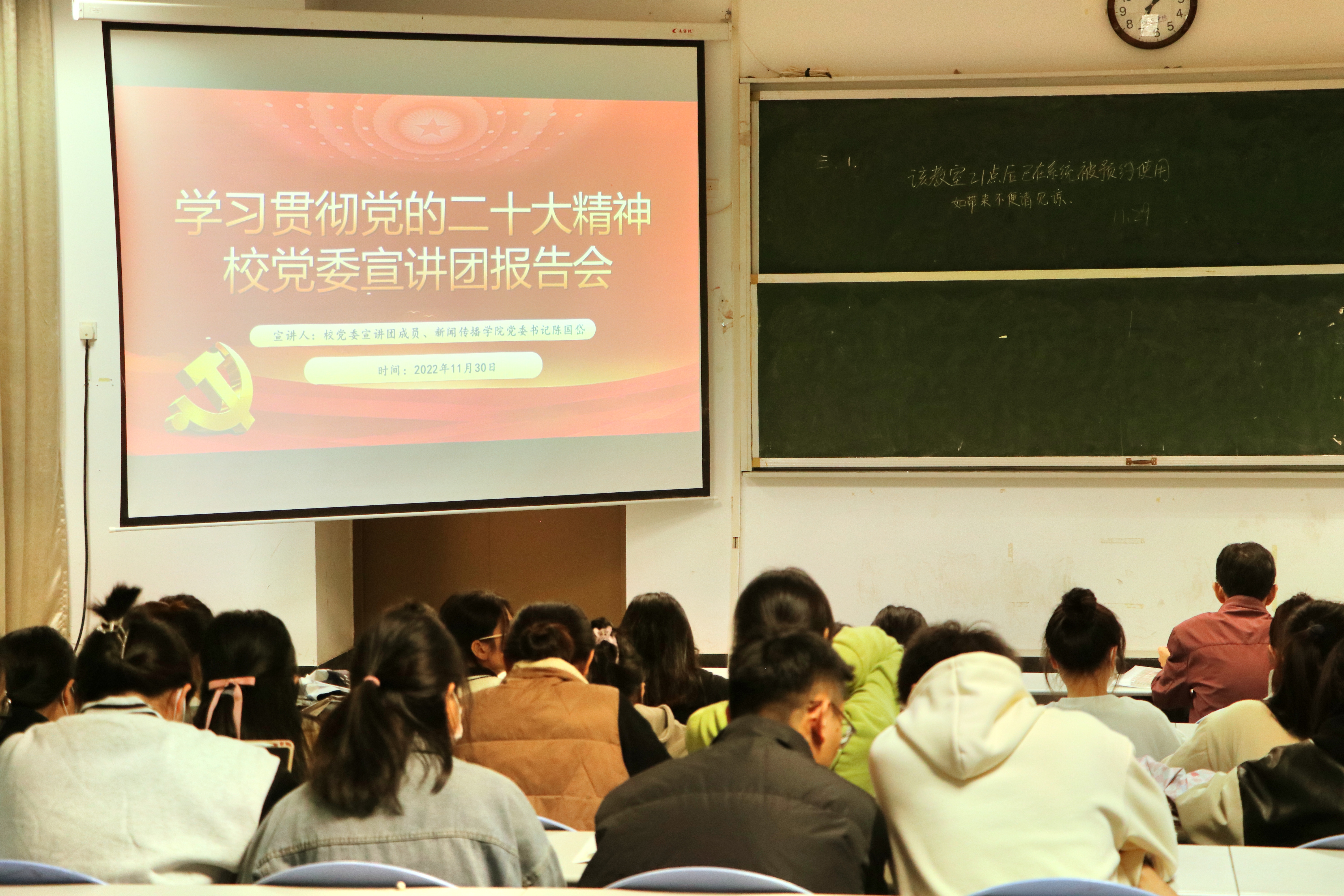 11月30日,可乐小说网 邀请校党委宣讲团成员、新闻传播学院党委书记陈国岱作了学习贯彻党的二十大精神宣讲报告会。报告会由可乐小说网 党委书记郑新胜主持,学院全体教职工及学生党员参会。