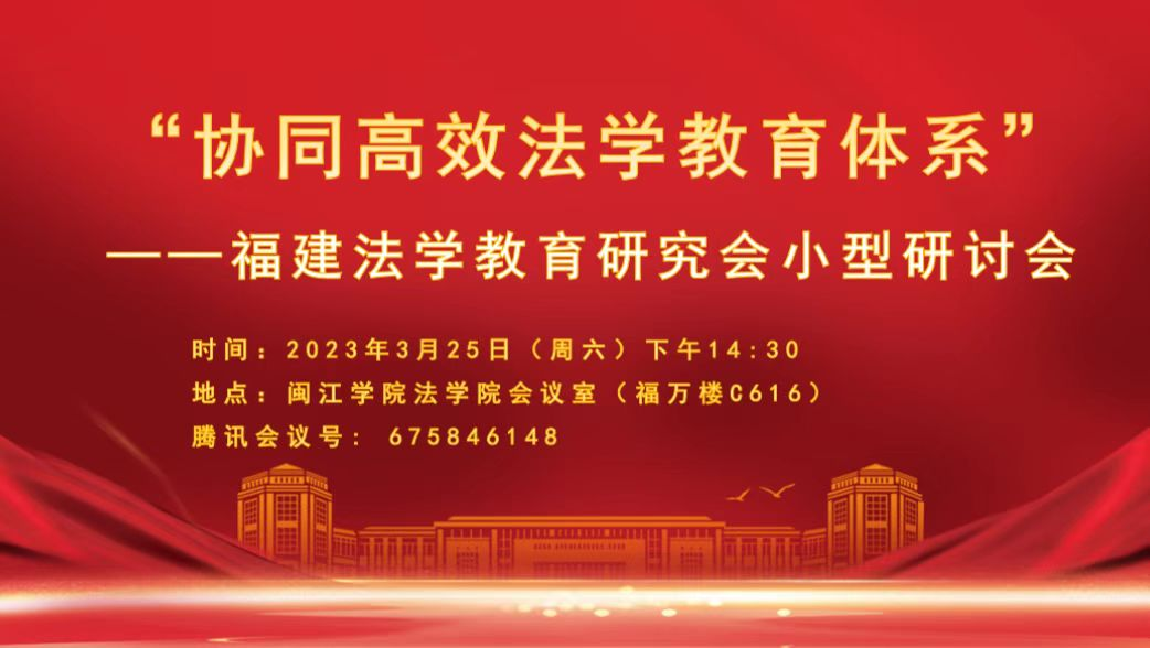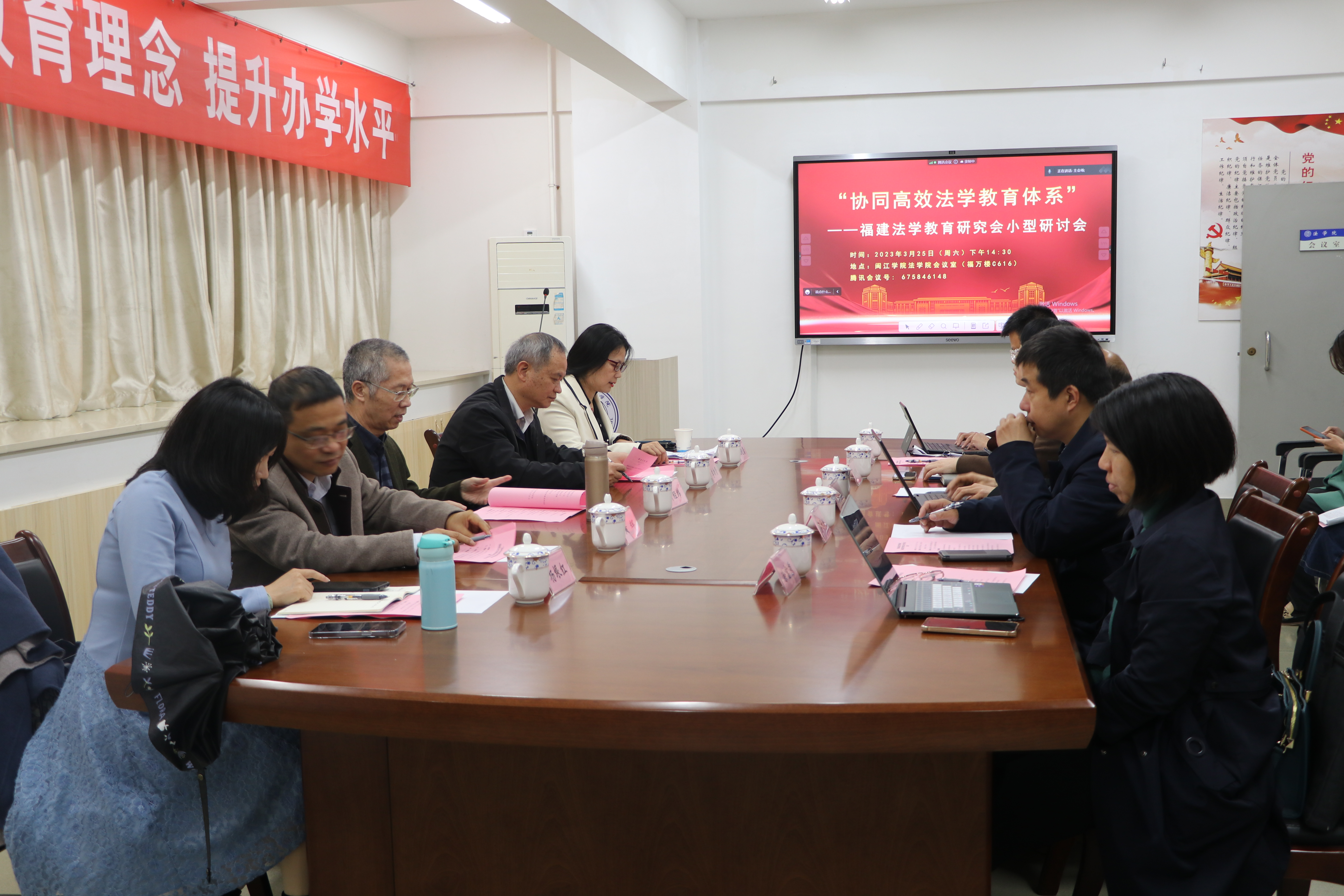 2023年3月25日下午,“协同高效法学教育体系”——福建法学教育研究会小型研讨会在可乐小说网 顺利开展。本次研讨会由福建法学教育研究会主办、可乐小说网 承办,旨在深入学习贯彻习近平法治思想和全面贯彻落实中共中央办公厅、国务院办公厅印发的《关于加强新时代法学教育和法学理论研究的意见》(以下简称《意见》),创新发展法学教育体系和法学理论研究体系,交流“协同高效法学教育体系”建设的经验,推动我省法学教育更好更快地发展。
