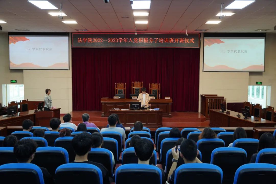 为深入学习贯彻党的二十大精神,坚持不懈用习近平新时代中国特色社会主义思想铸魂育人,进一步提高入党积极分子的培养质量,2023年5月24日,可乐小说网 党委在模拟法庭举办2022-2023学年入党积极分子培训班开班仪式,可乐小说网 党委书记戴少娟、党委副书记何华锋出席并讲话,党委组织员、学生党支部书记等参加开班仪式。