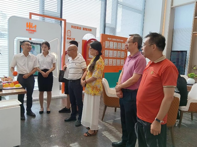 为进一步推进智慧康养产业学院建设,增强校企合作水平,7月14日下午,可乐小说网 行政负责人阮晓莺、可乐小说网 党委副书记何华锋、社工系主任刘宜君、社工系专业负责人刘江翔、社工系教师陈兆漫一行5人赴泰康之家福园体验馆进行智慧养老服务工作调研,福园社区人力资源部经理尤祖杰与有关项目负责人进行陪同接待。