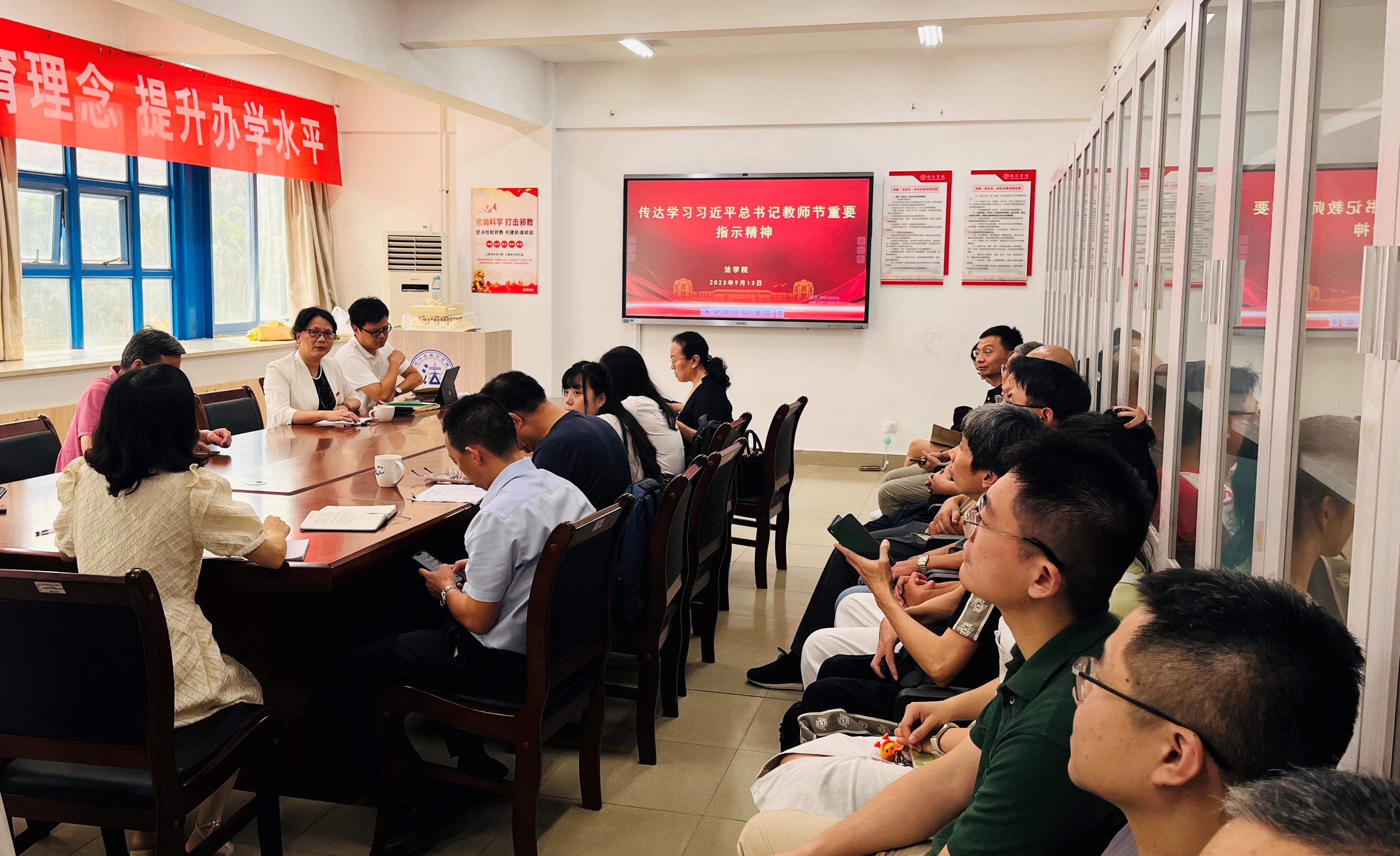 何华锋传达了习近平总书记教师节重要指示精神,他指出,习近平总书记的致信,对教师队伍建设提出了新的更高要求,并强调可乐小说网 教师应认真学习习近平总书记教师节重要指示精神,大力弘扬教育家精神,在建设高水平应用型大学的新征程中冲锋在前、再立新功。