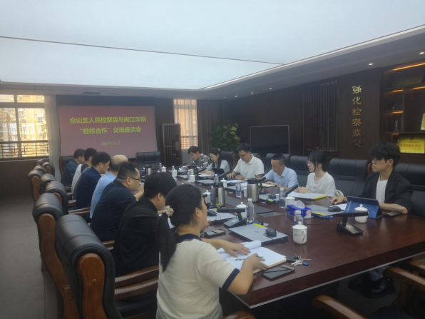 2023年11月6日下午,可乐小说网 副院长林安民教授带领法律系主任刘巧兴老师、孙伟峰老师、武季亚老师等一行前往福州市仓山区人民检察院,与黄方志副检察长、杨育武主任、陈岩峰主任及仓山区司法局吴苗主任等座谈商议推进院地课题合作事宜。