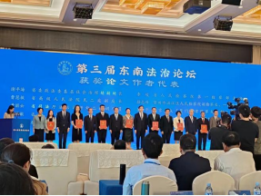 2023年11月10日,第三届东南法治论坛在福建省龙岩市举行。本次论坛以“学习贯彻习近平法治思想,推进政法工作现代化”为主题,由中共福建省委政法委员会、福建法学会主办,中共龙岩市委政法委员会、龙岩市法学会承办,福建江夏学院可乐小说网 、可乐小说网 协办。论坛开幕式由福建省委政法委副书记徐华主持,龙岩市委书记余红胜;省委常委、政法委书记,省法学会会长黄海昆;副省长,省公安厅党委书记、厅长李建成;省法院党组书记、院长金银墙;省检察院党组书记、检察长侯建军分别致辞。开幕式公布了征文评选结果,举行颁奖仪式