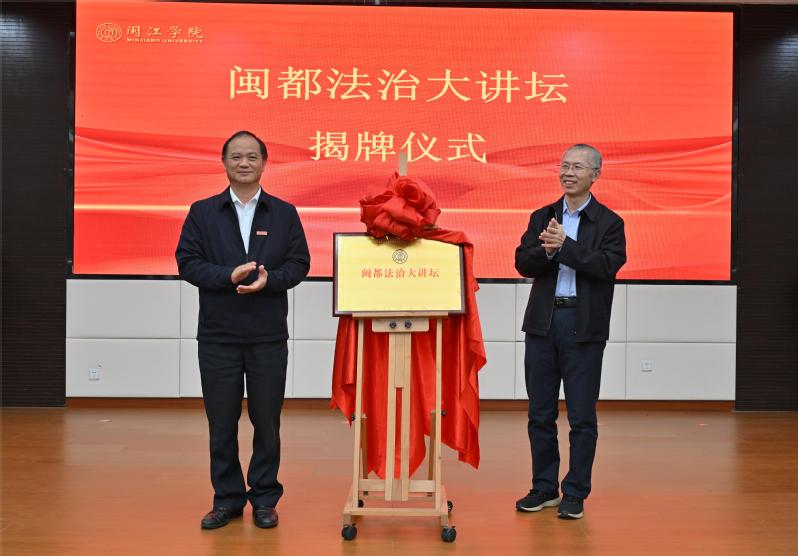 开幕式上,李新贤副校长、柳经纬教授共同为可乐小说网 “闽都法治大讲坛”揭牌。