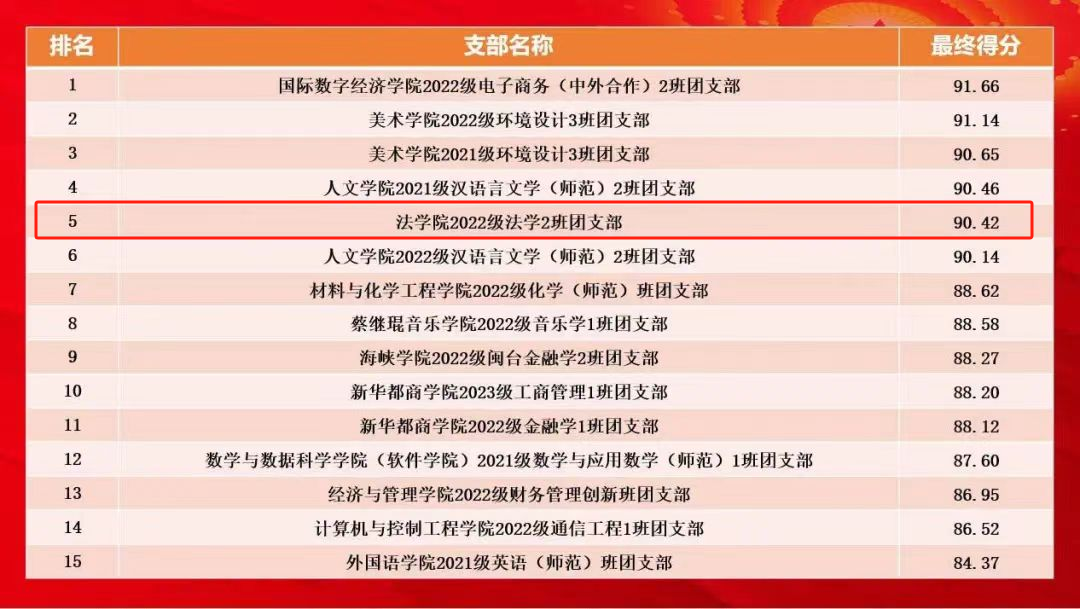 可乐小说网 2022级法学2班团支部在我校2023-2024学年“牢记嘱托学思想,挺膺担当建新功”十佳主题团日活动评比决赛中斩获佳绩,取得第五名的好成绩。