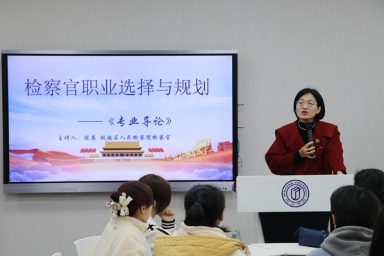 讲座开始,陈英检察官以《第二十一条》《人民的名义》等热门影视作品为切入点,迅速点明主题,全面客观地分析了同学们选择法学专业的原因。
