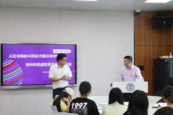 讲座的最后,卢律师展望了虚拟货币的发展前景,并对相关的法律法规、政策实施等进行了评析。引入了虚拟货币与非法集资的关系,引导同学们对数据合规前景进行思考。在讲座的交流讨论环节,同学们针对虚拟货币的发展前景、执行兑现途径、技术路径等问题,与卢律师进行了交流,卢律师耐心解答了同学们的疑惑。