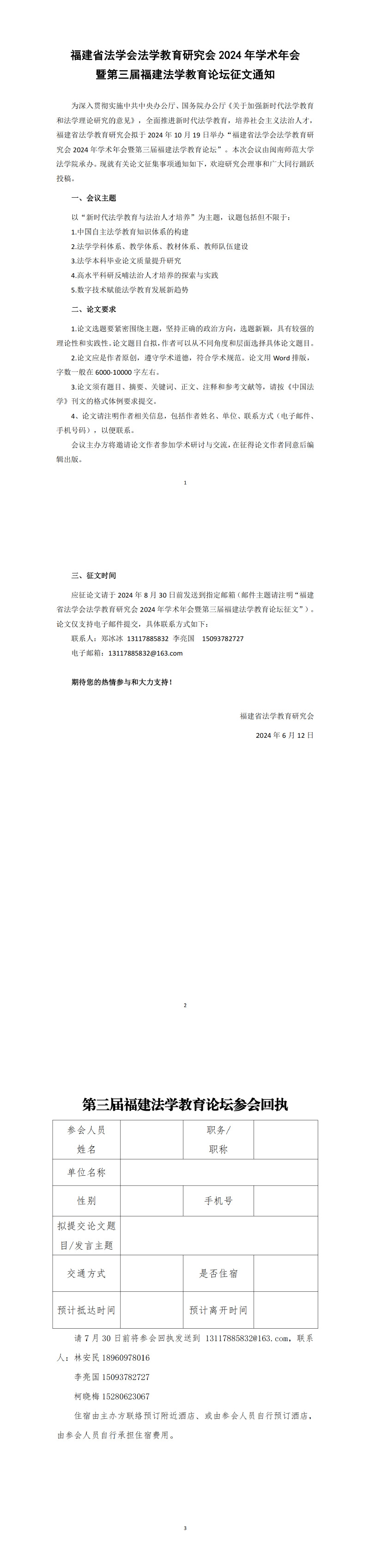 福建省法学会法学教育研究会 2024 年学术年会暨第三届福建法学教育论坛征文通知