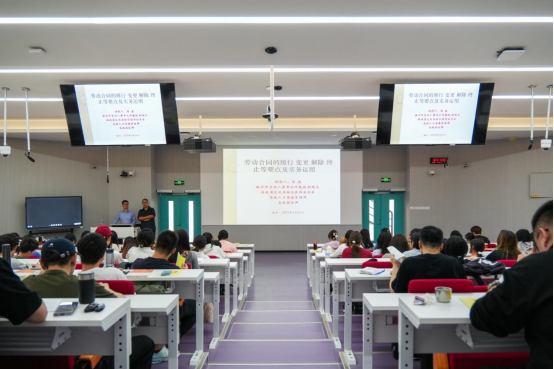 从劳动合同的履行的角度出发,郭森副院长介绍了合同履行和变更的基本原则和司法解释,并讲解了有关劳动合同中止的事由和法律后果,以银行变相调岗降薪为例,解释了劳动合同的变更在司法实践中的处理。最后,郭森副院长深入讲解了劳动合同的解除和终止,从相关概念、劳动者权利、用人单位权利等方面进行分析并结合了相关法律,引出了在实务中可能遇到的有关劳动合同解除和终止的情形。
