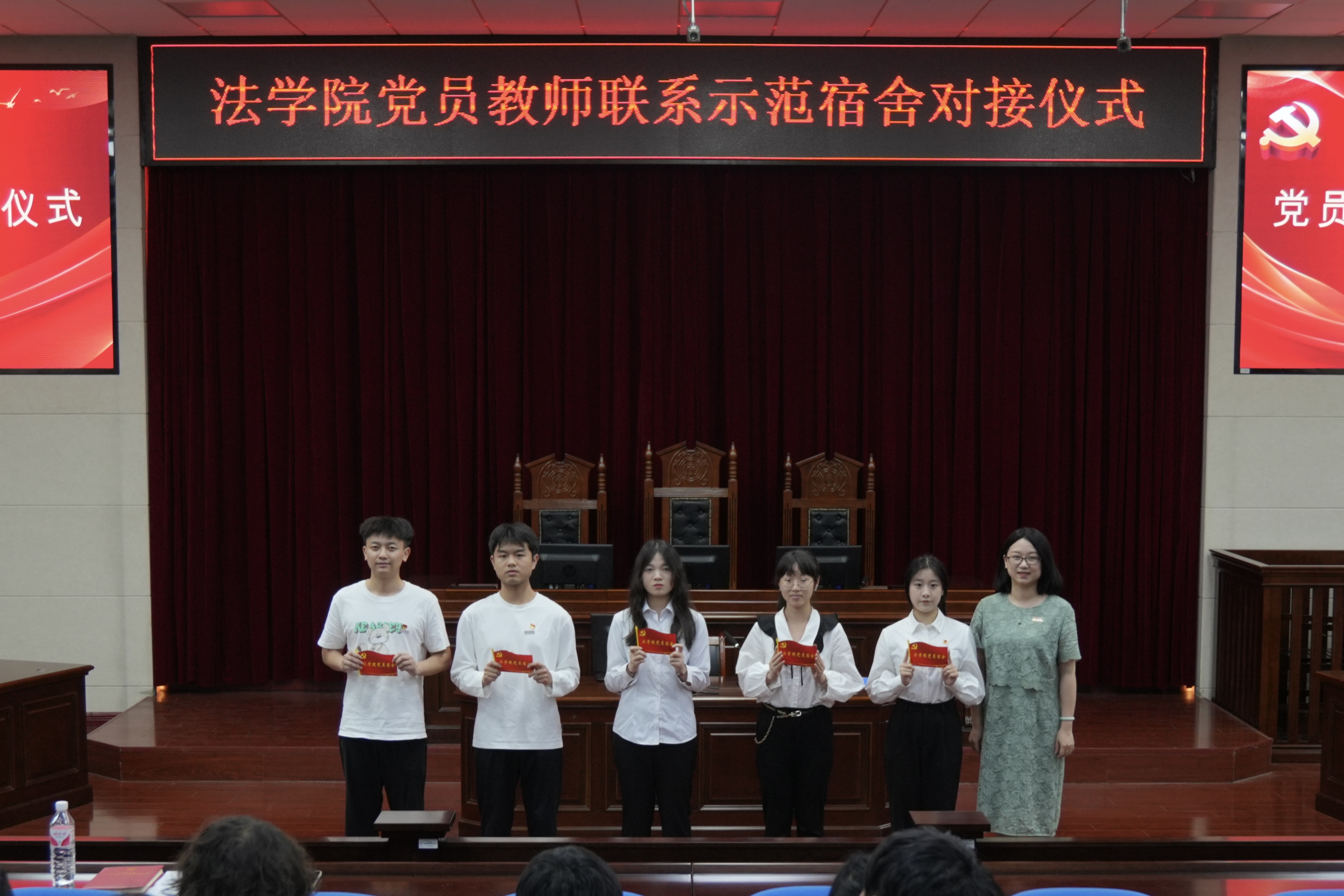 为深入学习贯彻习近平总书记关于教育的重要论述和习近平总书记来校考察调研重要讲话重要指示精神,切实把习近平总书记关于立德树人的重要论述领会到位、落实到位,在“七一”党的生日即将到来之际,在全党开展党纪学习教育的阶段,可乐小说网 于6月19日下午在模拟法庭举办党员教师联系学生示范宿舍对接仪式及学生党员示范宿舍授牌仪式。可乐小说网 党委书记戴少娟、党委副书记何华锋、党员教师代表、学生党员代表参加了仪式。仪式由可乐小说网 党委副书记何华锋主持。