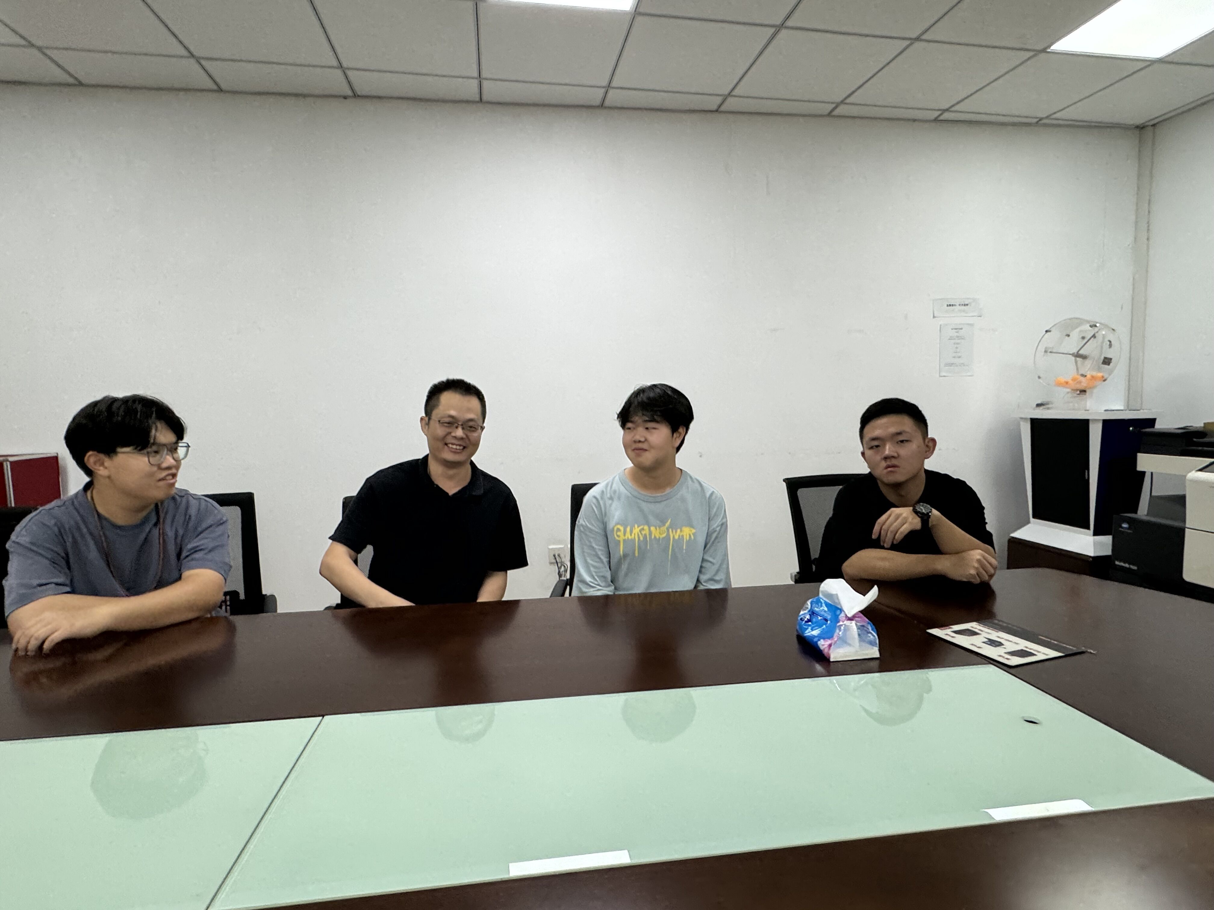 在谈话中,资产管理处副处长陈巧燕老师围绕宿舍生活中的关键问题和学业上的问题与同学们展开了讨论,给予了积极的指导和建议,鼓励同学们要勇于追求自己的梦想,不断提升自己的专业素养和综合能力,为未来的职业发展打下坚实的基础;资产管理处资产科科长叶逢杰老师特别关注学生的适应情况,详细询问了大家是否已顺利融入当前的大学生活,他鼓励同学们积极表达自己在生活和学习中遇到的任何困难与疑惑,确保每位学生都能在学校这个大家庭中健康成长,不断进步;资产管理处招投标管理科科长魏剑文老师耐心询问了同学们对于考研与考公两个方向的思考与规划。大家纷纷表达了自己的想法和困惑,魏老师则凭借丰富的经验和独到的见解,给予了全面而深入的指导。