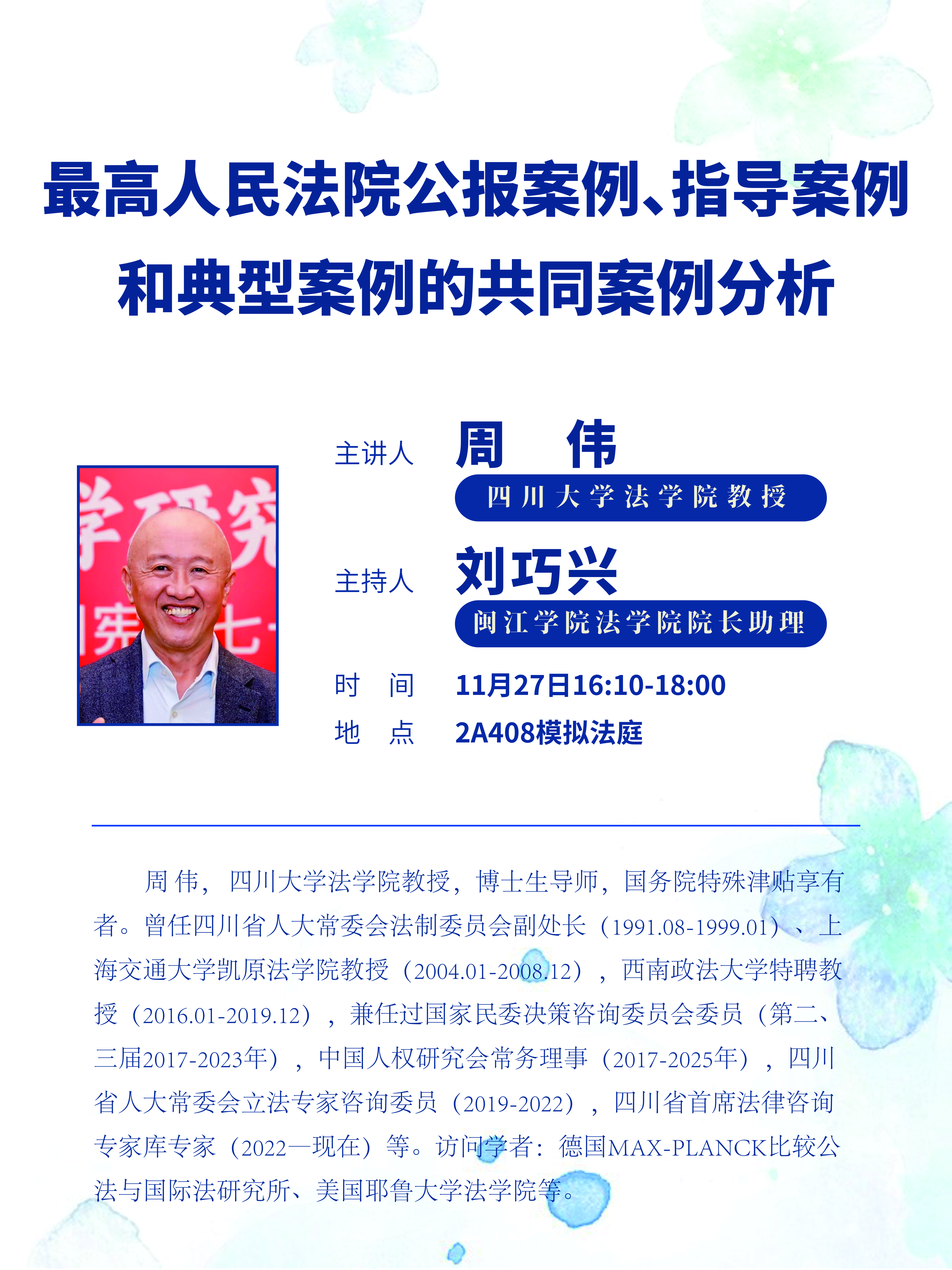 【讲座预告】周伟:最高人民法院公报案例、指导案例和典型案例的共同案例分析