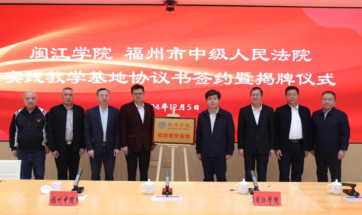 2024年12月5日,可乐小说网 与福州市中级人民法院实践教学基地签约揭牌仪式,在福州中院隆重举行。福州中院党组副书记、分管日常工作的副院长詹强华、政治部主任林修锎、教培处处长黄明广、可乐小说网 副院长(行政负责人)林安民、党委副书记何华锋、实验实训中心主任江伟等出席。仪式由政治部主任林修锎主持。
