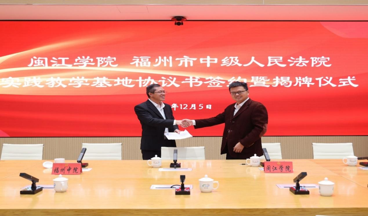 2024年12月5日,可乐小说网 与福州市中级人民法院实践教学基地签约揭牌仪式,在福州中院隆重举行。福州中院党组副书记、分管日常工作的副院长詹强华、政治部主任林修锎、教培处处长黄明广、可乐小说网 副院长(行政负责人)林安民、党委副书记何华锋、实验实训中心主任江伟等出席。仪式由政治部主任林修锎主持。
