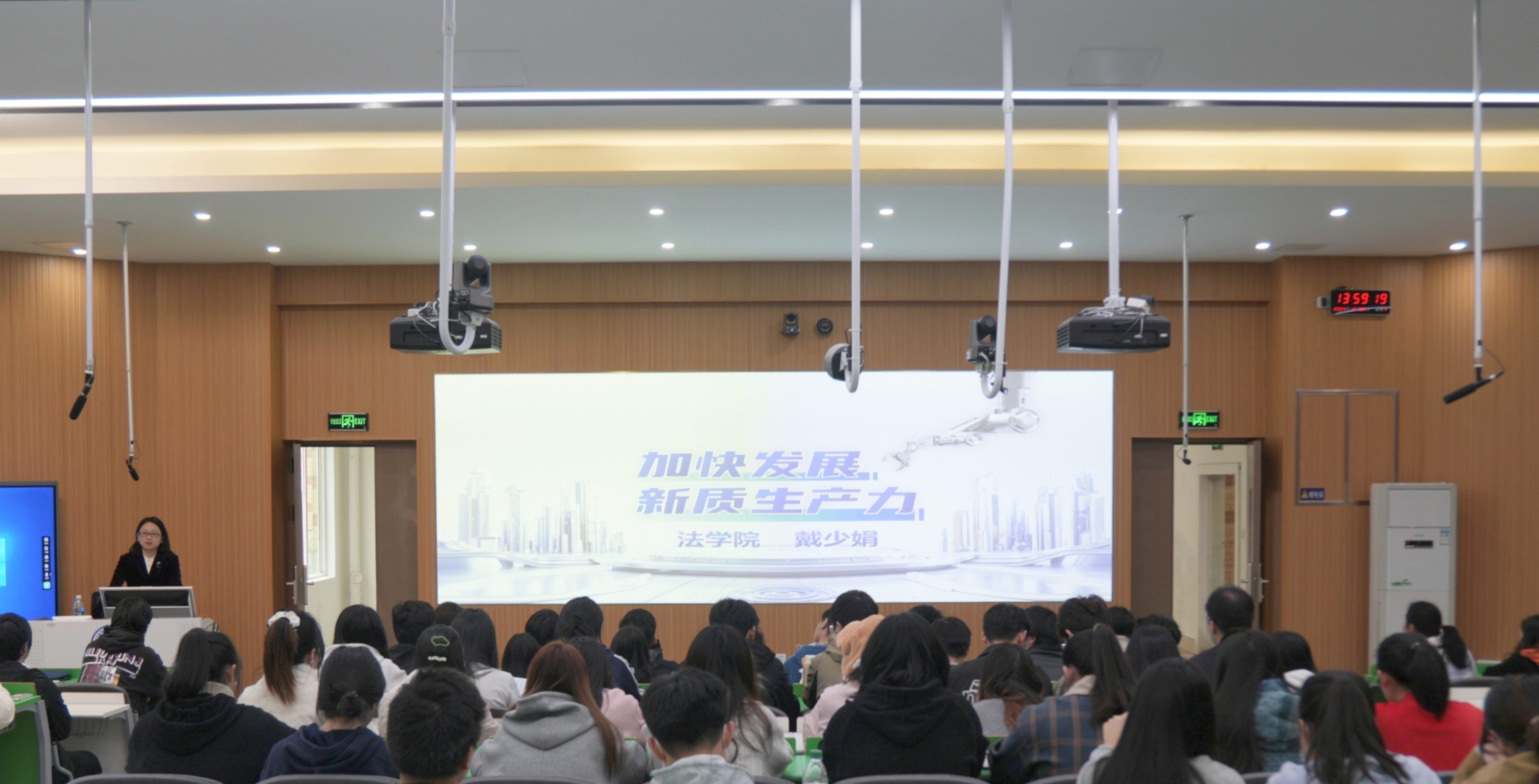 戴少娟以《加快发展新质生产力》为题,从2024年十大热词榜单中的关键词切入,结合当下社会热点问题,深入解读了习近平总书记关于发展新质生产力的重要论述,从新质生产力的科学内涵及基本逻辑、加快发展新质生产力的重大意义、加快发展新质生产力的实现路径三个方面进行了全面系统的讲解。讲座主题鲜明、系统全面、内容丰富,既有宏观视野,又有微观视角;既有理论高度,又有现实思考,加深了同学们对“新质生产力”的理解和认识。