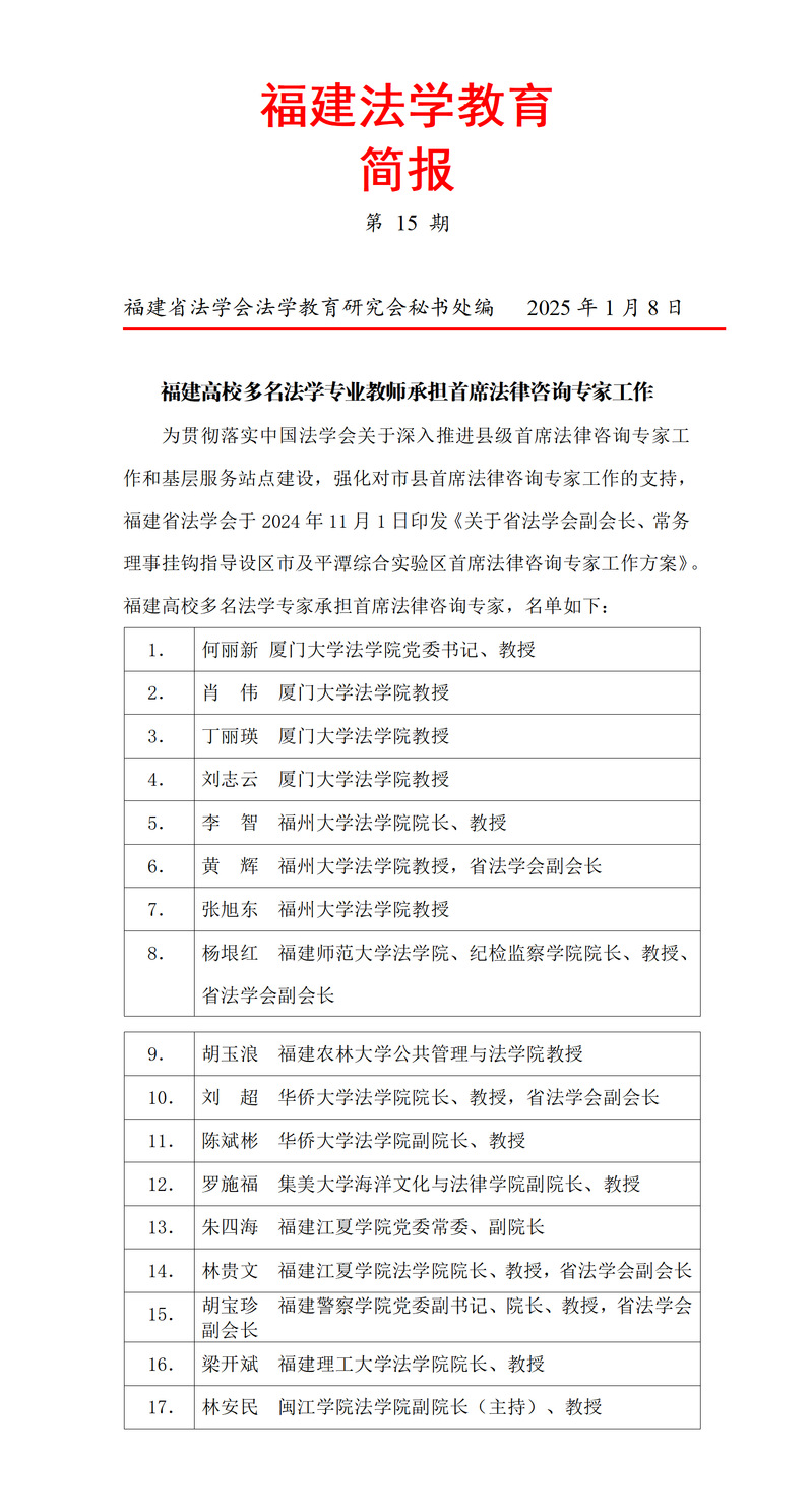 福建法学教育简报第15期