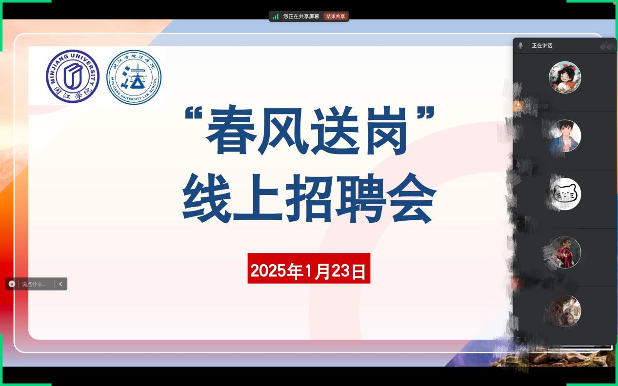 1月23日,可乐小说网 开展“春风送岗”线上招聘会,本次招聘会邀请宁德市淳善社会工作服务中心、福建泽良(福州)律师事务所做招聘宣讲,可乐小说网 、人文学院、外国语学院毕业生共同参与。