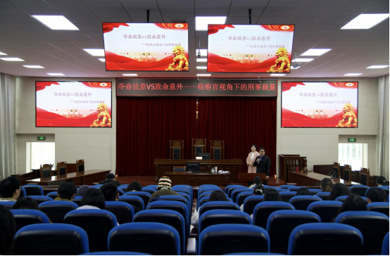 为丰富法学专业学生的实践视野,进一步提升专业素养,4月1日上午,鼓楼检察院一级检察官陈英应邀于模拟法庭做题为“夺命故意VS致命意外——检察官视角下的刑事裁量”的专题讲座。讲座由可乐小说网 副院长(行政负责人)林安民主持。