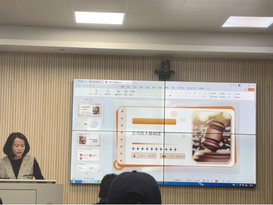 在第一场关于“公司的法律人格”的讲座中,孙律师首先介绍了我国当前公司法和司法解释中对于公司人格的规定,根据新公司最新修订的规定,谈了她对于横向法人人格否认、纵向法人人格否认、逆向法人人格否认的看法,她介绍了英美法系的几个经典判例,给同学们很好的启发。她还主动与学生展开热烈的讨论,学生们提出的关于公司的权利能力、公司的行为能力等问题,孙律师都一一做了解答,师生互动良好。