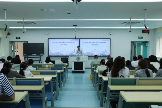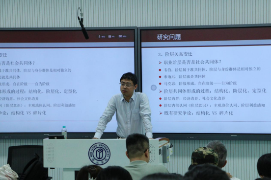 讲座伊始,朱斌副院长强调,社会分层结构变迁一直是社会学关注的核心问题,充分认识社会分层结构变迁,是推动社会工作高质量发展,促进社会秩序与社会整合的基本前提。随后他围绕社会阶级分层形态、阶层地位、阶层关系及封闭机制四个方面,系统剖析社会结构分层变迁逻辑。在探讨社会共同体形成时,他通过对比马克思、韦伯、布迪厄的经典理论,深入阐释共同体认定的多元标准。