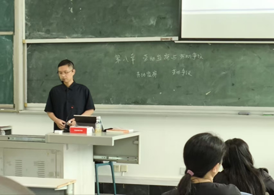 在公开课上,魏哲老师贯彻OBE理念,首先展示了一个具体的劳动纠纷案例,通过师生互动的方法引导学生深入思考“劳动者在遭受劳动权益侵害时可以通过哪些途径维权”,从而将学生的注意力吸引到本次课堂的教学主题“劳动监察与劳动争议”上面。接着,魏老师指出,劳动者维权路径主要包括行政路径和司法路径两种类型,前者是指劳动监察,后者则包括仲裁和诉讼。他巧妙运用多媒体技术、案例解说方法等多种教学方法,深入浅出地讲解了劳动监察的概念和特征,分析了劳动监察的优势与实施,然后通过探讨劳动监察的局限性,进一步分析了劳动仲裁和诉讼的必要性等内容,讲解生动,充分展示了他扎实的专业功底与丰富的教学设计,传递“以学生为中心”“创新育人”等理念,实现了课程育人目标。