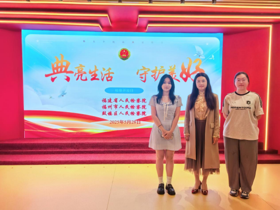 2025年5月28日,省、市、区三级检察机关借“民法典宣传月”契机,在福州市鼓楼区人民检察院开展“‘典’亮生活·守护美好”检察开放日活动,可乐小说网 积极组织师生参与。可乐小说网 陈君副教授携同22级林菲、23级王安妮两名学生代表参加。