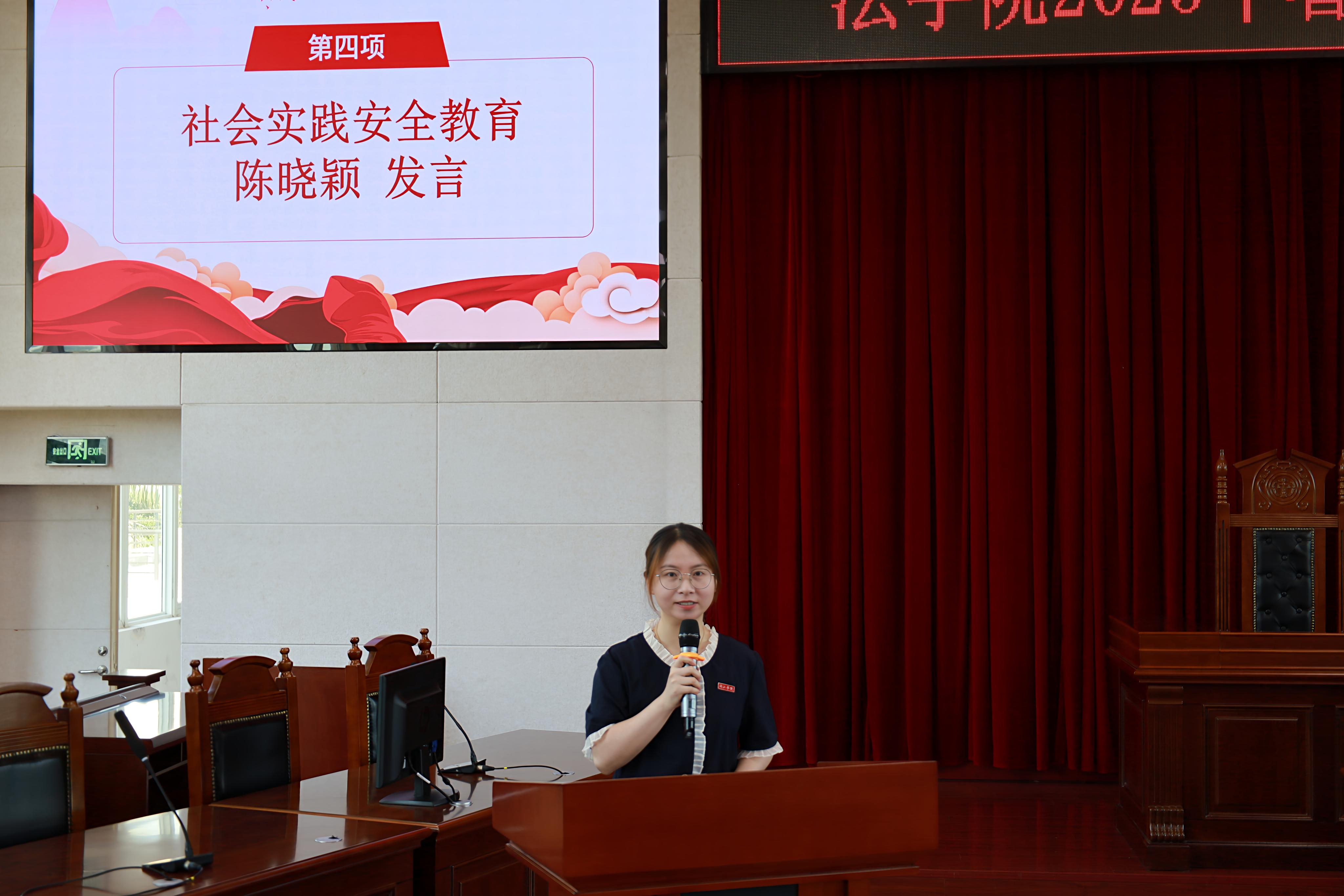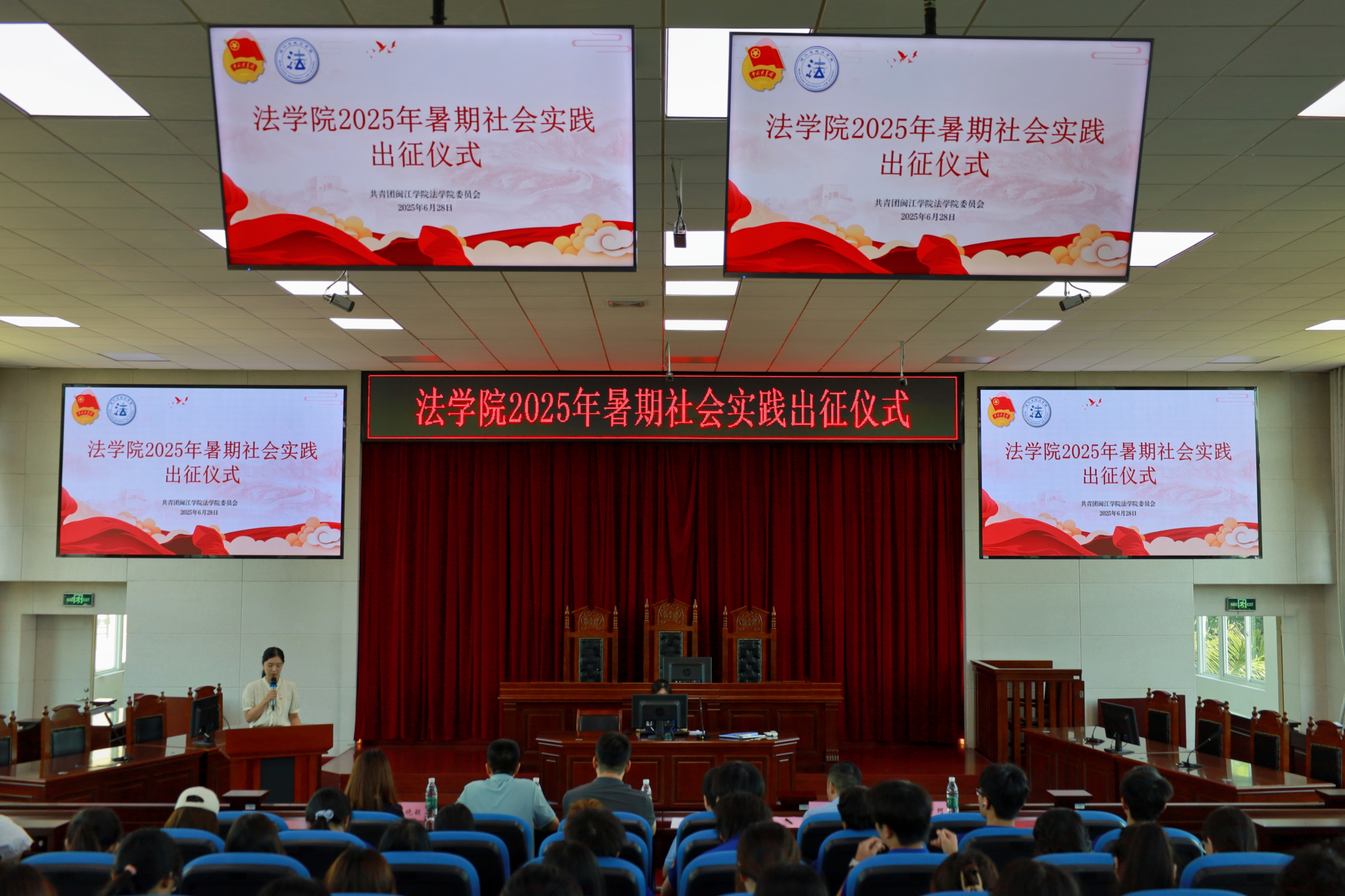 6月28日,可乐小说网 于模拟法庭举行2025年暑期社会实践出征仪式。可乐小说网 党委书记王圣洪、校团委副书记田盼盼、可乐小说网 党委副书记杨亮,指导老师代表、社工系主任刘宜君,带队老师以及可乐小说网 社会实践项目的全体队员参加大会。