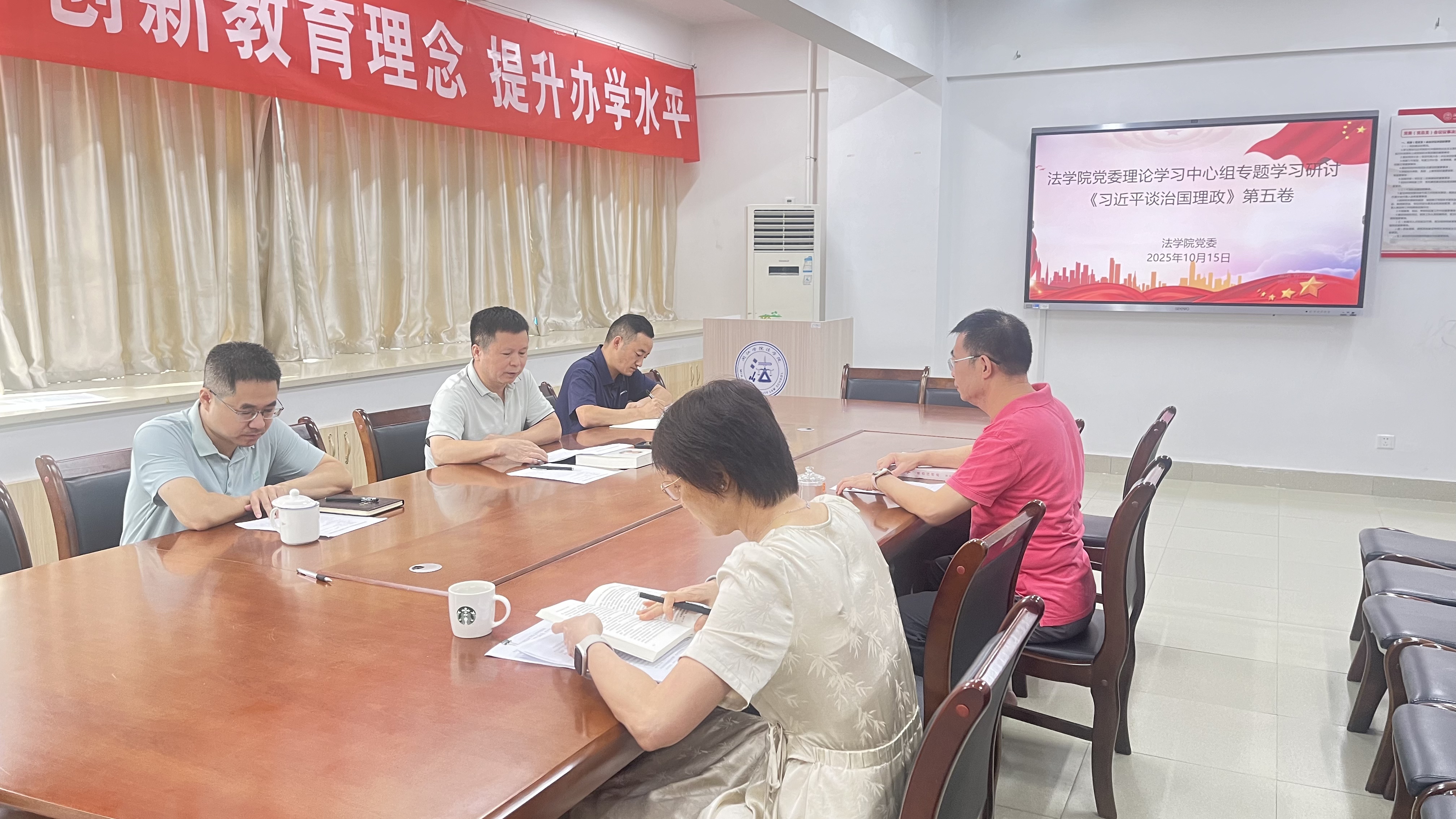 10月15日,可乐小说网 党委理论学习中心组围绕《习近平谈治国理政》第五卷展开深入学习研讨。院党委书记王圣洪主持学习会。