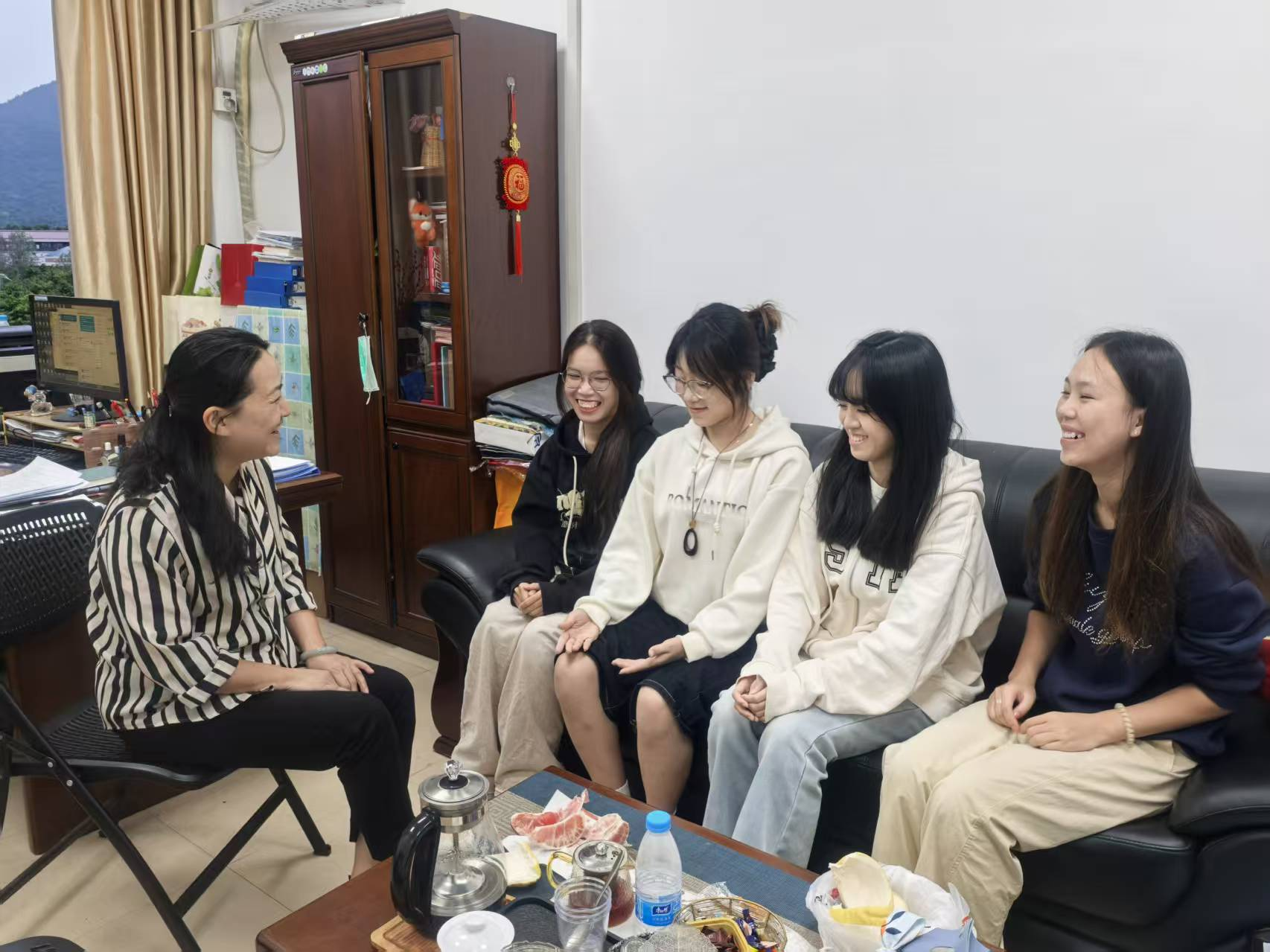 马克思主义学院党总支委员张颖始终将学生身心健康放在首位,她反复叮嘱同学们重视体育锻炼,建议傍晚到操场跑步、散步以舒展筋骨,并强调健康饮食的重要性,提醒大家多摄入新鲜蔬菜水果、少吃垃圾食品。